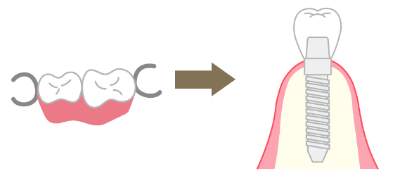 当院では、入れ歯からインプラントへ移行を検討されている方に対し、現在のお口の状態やご希望を丁寧に確認し、一人ひとりに合った治療計画をご提案しています。